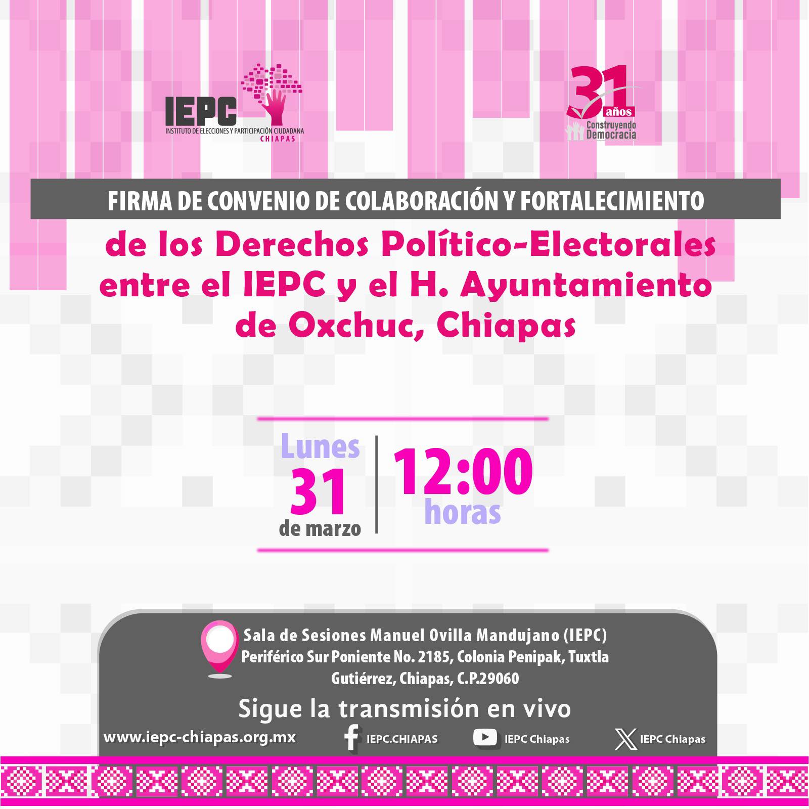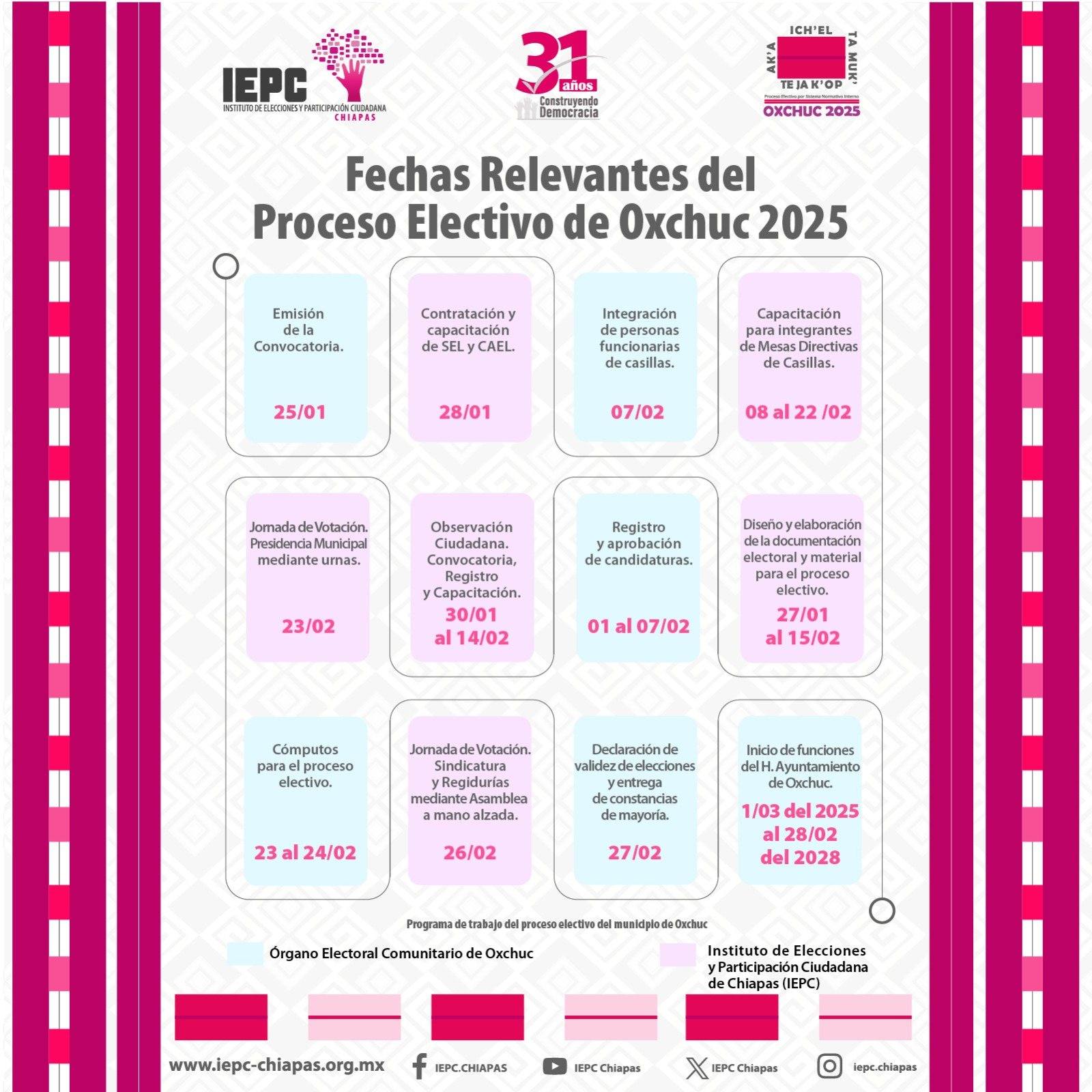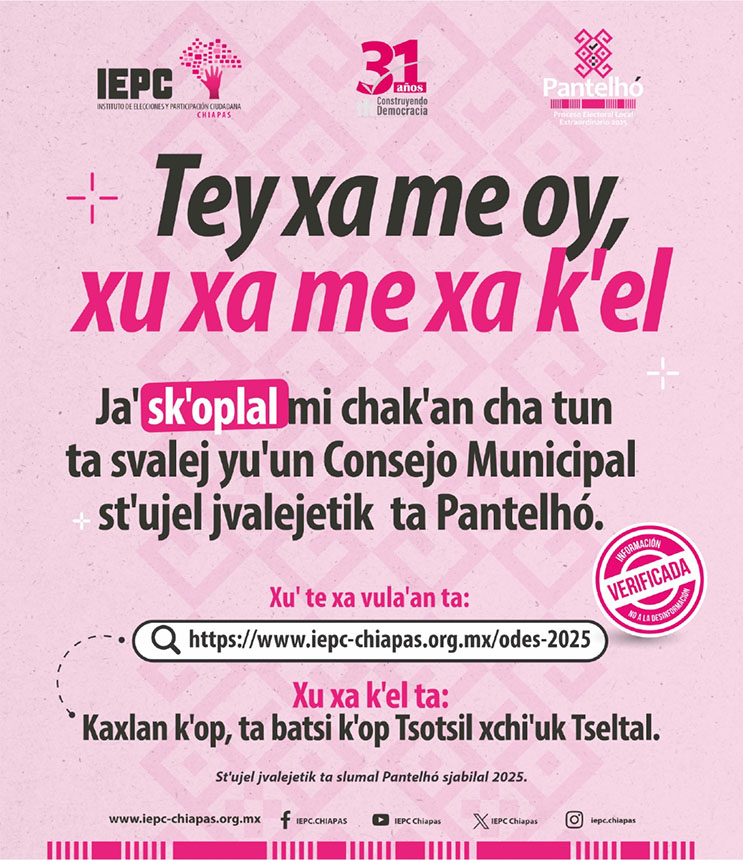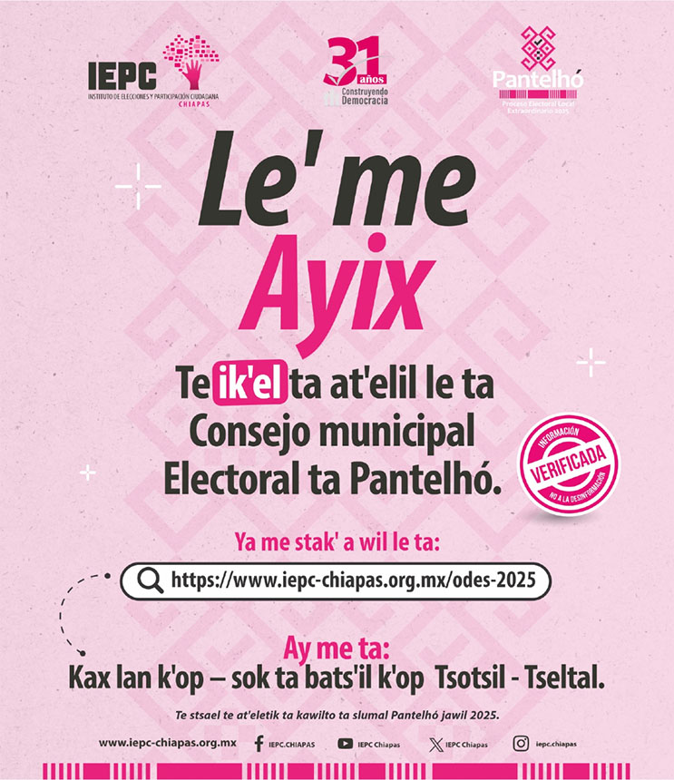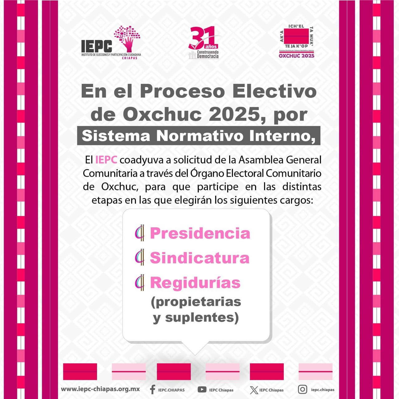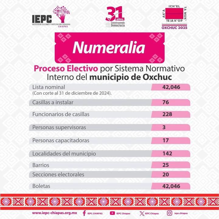 También podrá consultar información sobre el Proceso Electivo por Sistema Normativo Interno en Oxchuc en la siguiente liga.