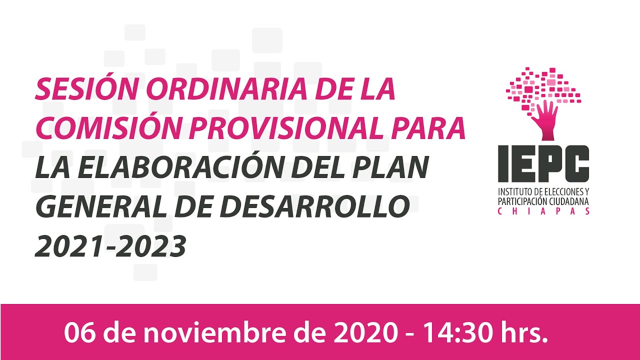 Sesión de la Comisión Provisional para la Elaboración del Plan General de Desarrollo 2021-2023, 6Nov2020 Sesión de la Comisión Provisional para la Elaboración del Plan General de Desarrollo 2021-20236 de Noviembre de 2020 14:30 horas