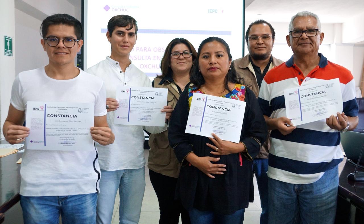 Este lunes, en sesión extraordinaria, el Consejo General del Instituto de Elecciones y Participación Ciudadana (IEPC) de Chiapas, aprobó la acreditación de seis ciudadanas y ciudadanos, quienes cumplieron con los requisitos establecidos en los lineamientos y convocatoria, para participar como Observadores/as en la Organización y Desarrollo de la Consulta por la que la ciudadanía del Municipio de Oxchuc, determinará el sistema de elección de sus autoridades municipales.