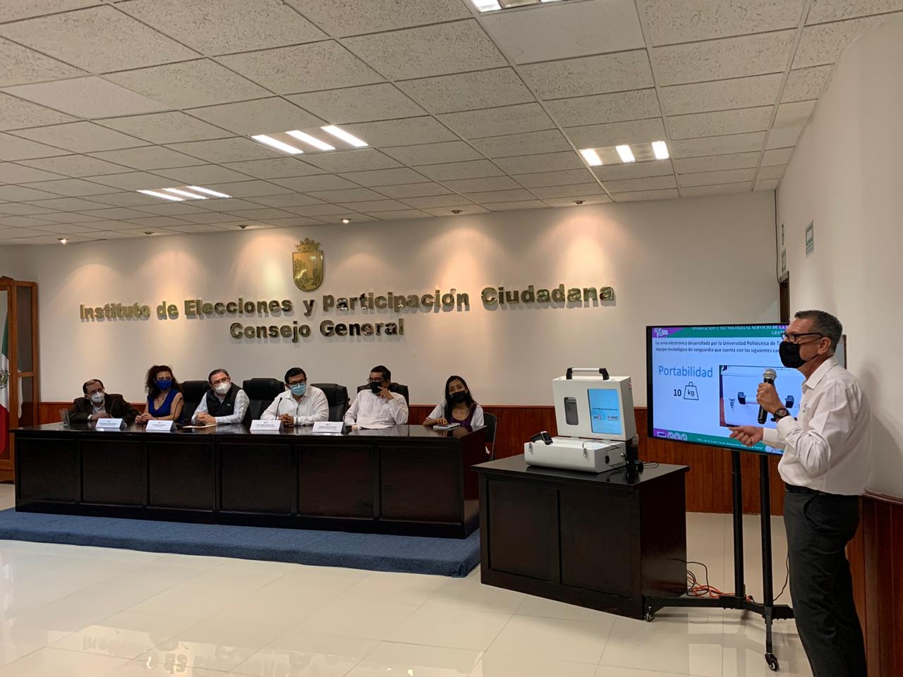 Durante el mes de marzo, el IEPC entregó a dicho instituto de estudios superiores, el financiamiento correspondiente a 50 mil pesos para desarrollar el prototipo de la urna, misma que se utilizará para promover los mecanismos de participación y actividades de educación cívica y capacitación.