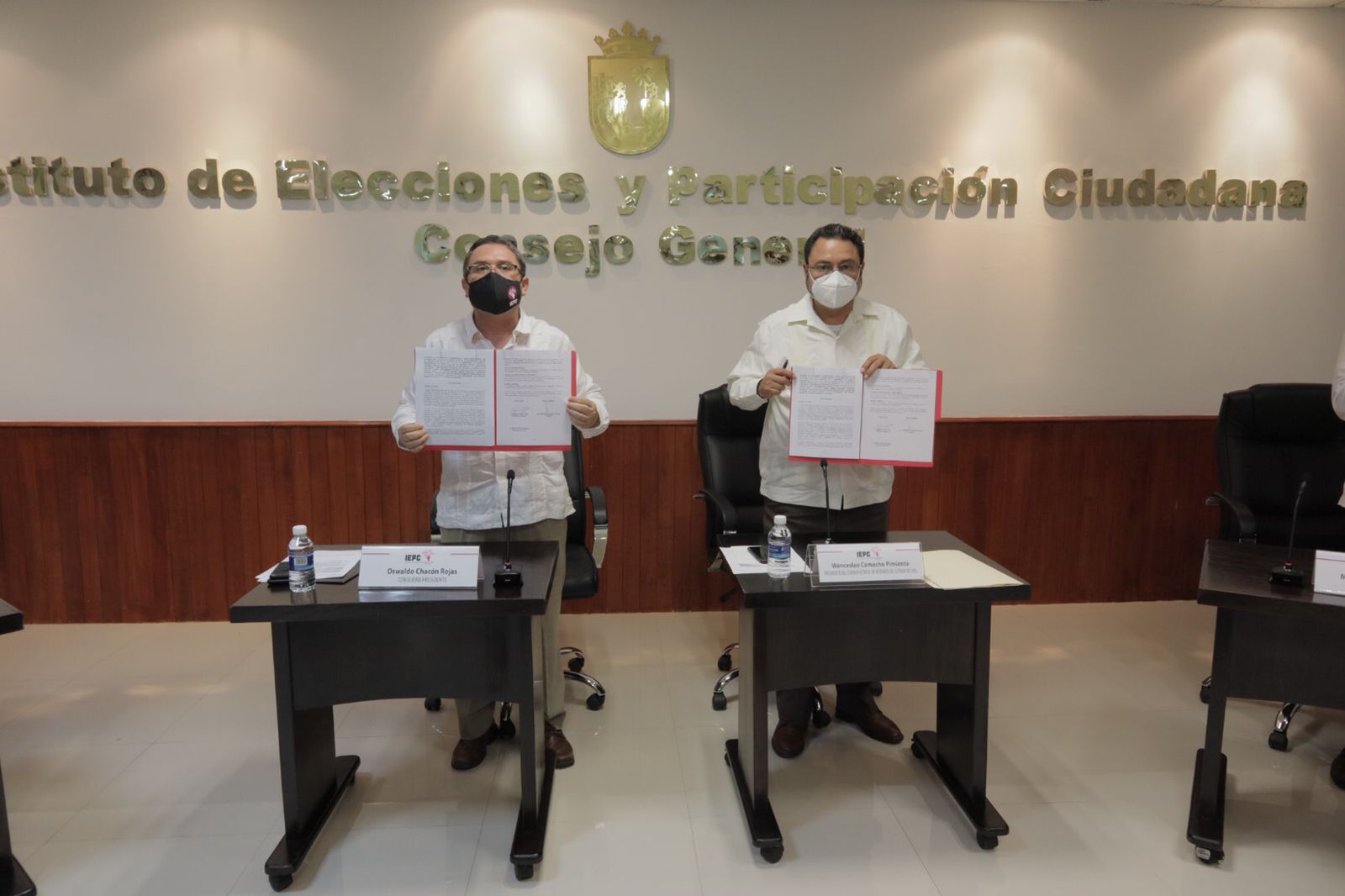 El Instituto de Elecciones y Participación Ciudadana (IEPC) de Chiapas y Consejo Estatal de Notarios del Estado llevaron a cabo la firma del Convenio de apoyo y colaboración con la finalidad de otorgar el servicio notarial necesario durante el Proceso Electoral Local Ordinario 2021, especialmente durante la Jornada Electoral del 6 de junio. Por parte del IEPC, signó el convenio el consejero presidente Oswaldo Chacón Rojas, mientras que, por el Consejo de Notarios, fue su presidente, Wenceslao Camacho Pimienta.