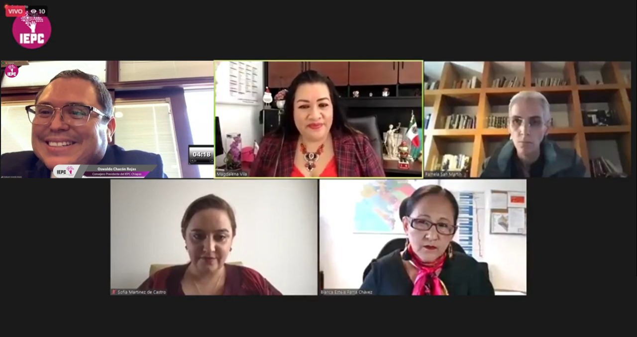 El Instituto de Elecciones y Participación Ciudadana (IEPC) de Chiapas, llevó a cabo este martes 16 de noviembre, la Conferencia Magistral virtual: “La era digital, redes sociales y su impacto en los procesos electorales” impartida por Pamela San Martín Ríos y Valles, ex Consejera Electoral del Instituto Nacional Electoral, y en la que participaron el consejero presidente Oswaldo Chacón Rojas, y las consejeras electorales María Magdalena Vila Domínguez, Blanca Estela Parra Chávez y Sofía Martínez De Castro, presidenta e integrantes de la Comisión Permanente de Quejas y Denuncias, respectivamente.