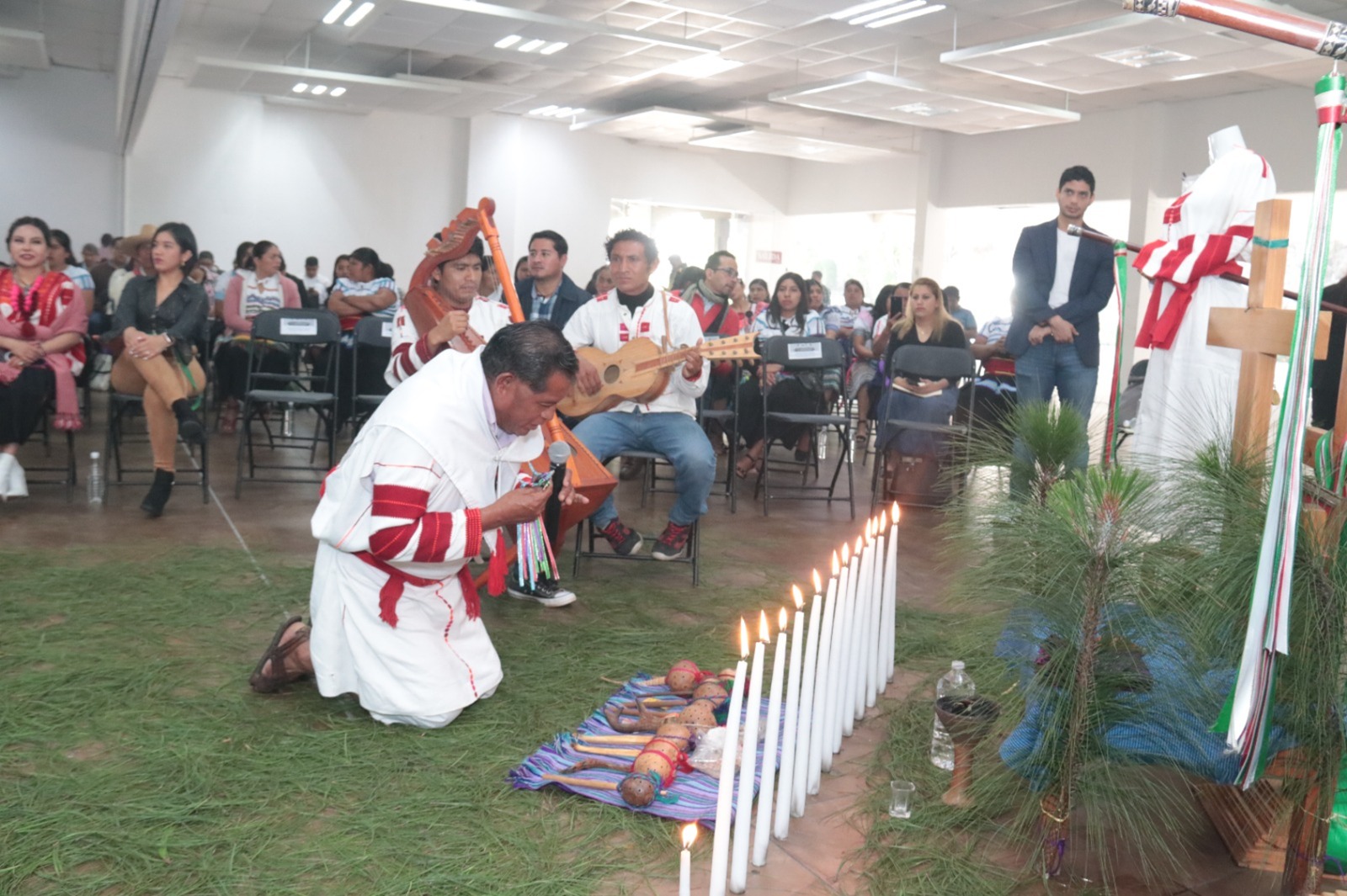 Previo al inicio del foro, se realizó una Ceremonia Tradicional por integrantes del pueblo Tseltal de Oxchuc, para pedir que los trabajos de este conversatorio tuvieran un desarrollo en armonía y para bien de los pueblos originarios.