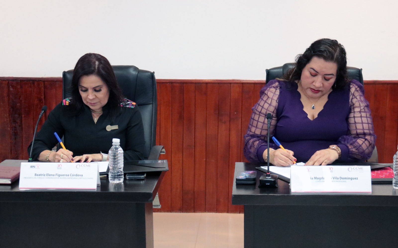 El Instituto de Elecciones y Participación Ciudadana (IEPC) y Consejo Coordinador de Mujeres Empresarias Capítulo Chiapas (CCME), firmaron la mañana de este miércoles, un Convenio de Colaboración, con el objetivo de promover el conocimiento sobre los procesos y espacios participativos, así como la vinculación con el ámbito democrático del estado, con la intención de mejorar las habilidades de las mujeres empresarias y de sus equipos de trabajo, para el ejercicio ciudadano y su influencia en el espacio público.