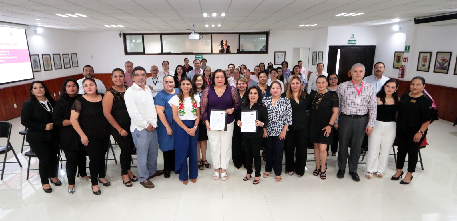 Las presidentas del IEPC y del CCME signaron el convenio, mismo que fue atestiguado por las consejeras Helena Margarita Jiménez Martínez y Teresa de Jesús Alfonso Medina, presidenta e integrante respectivamente, de la Comisión Permanente de Educación Cívica y Capacitación, así como por el Secretario Ejecutivo Manuel Jiménez Dorantes.