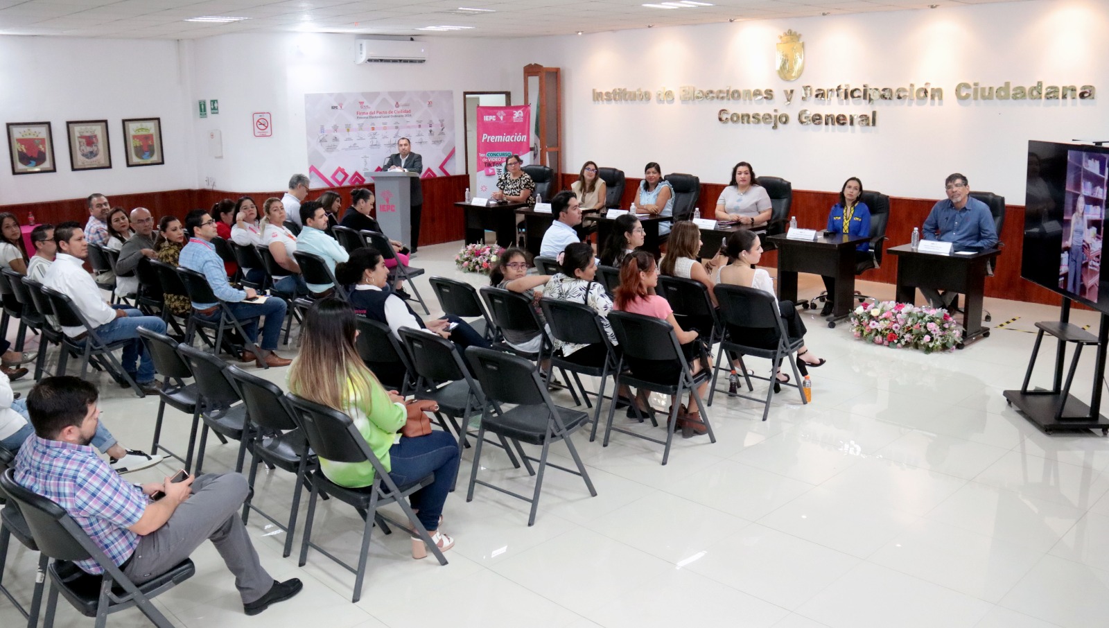 Durante el desarrollo de este evento, estuvieron presentes las Consejeras Teresa de Jesús Alfonso Medina y Helena Margarita Jiménez Martínez; el Secretario Ejecutivo Manuel Jiménez Dorantes, personal del IEPC, y participantes del concurso.