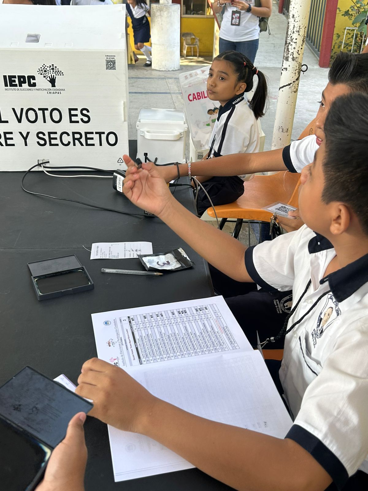 Por parte del IEPC, acompañaron la sesión, la consejera electoral Helena Margarita Jiménez Martínez, el secretario ejecutivo Guillermo Arturo Rojo Martínez, la directora ejecutiva de Educación Cívica y Capacitación, Karina Culebro Mandujano y el equipo operativo: Juan Antonio Hernández Beltrán, Carmen Eugenia Mejía Hernández, Daniel Rubén Ortiz Cordero, Francisco Fabián Jiménez Ramos y María Fernanda Cabrera Culebro. Asimismo, acudió el director de la escuela primaria “Miguel Rubén Rincón Coutiño”, Leonel Hernández Jarquín, y por supuesto, familiares de las infancias ediles.