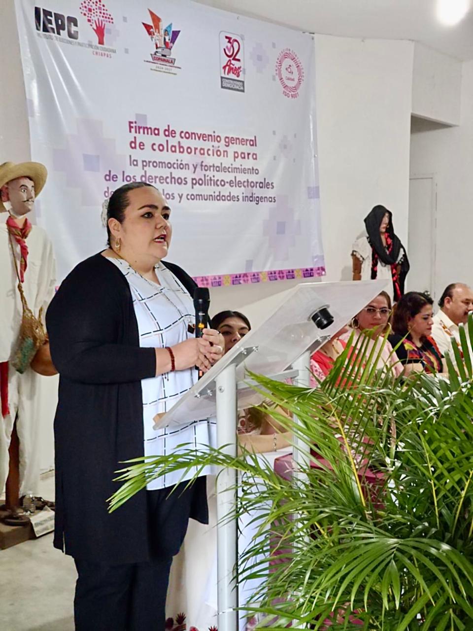 Durante el acto protocolario, estuvo presente el Secretario Ejecutivo, Guillermo Arturo Rojo Martínez; y la titular de la Unidad Técnica de Asuntos Indígenas del IEPC, Alma Rocío Sántiz López.