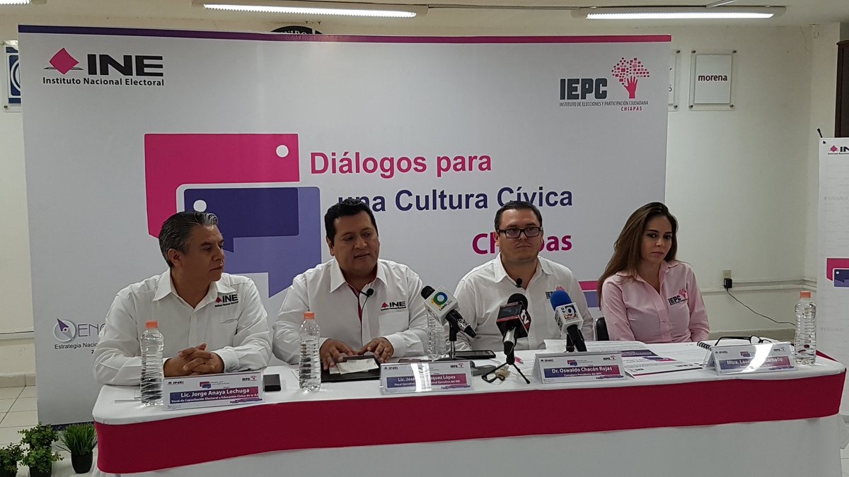En el marco de la Estrategia Nacional de Cultura Cívica (ENCCÍVICA) 2017-2023, el Instituto Nacional Electoral (INE) y el Instituto de Elecciones y Participación Ciudadana de Chiapas (IEPC), informaron a medios de comunicación sobre la creación de espacios para implementar los Diálogos para una Cultura Cívica, los cuales se llevarán a cabo en el ámbito estatal y en los doce distritos electorales federales de la entidad.