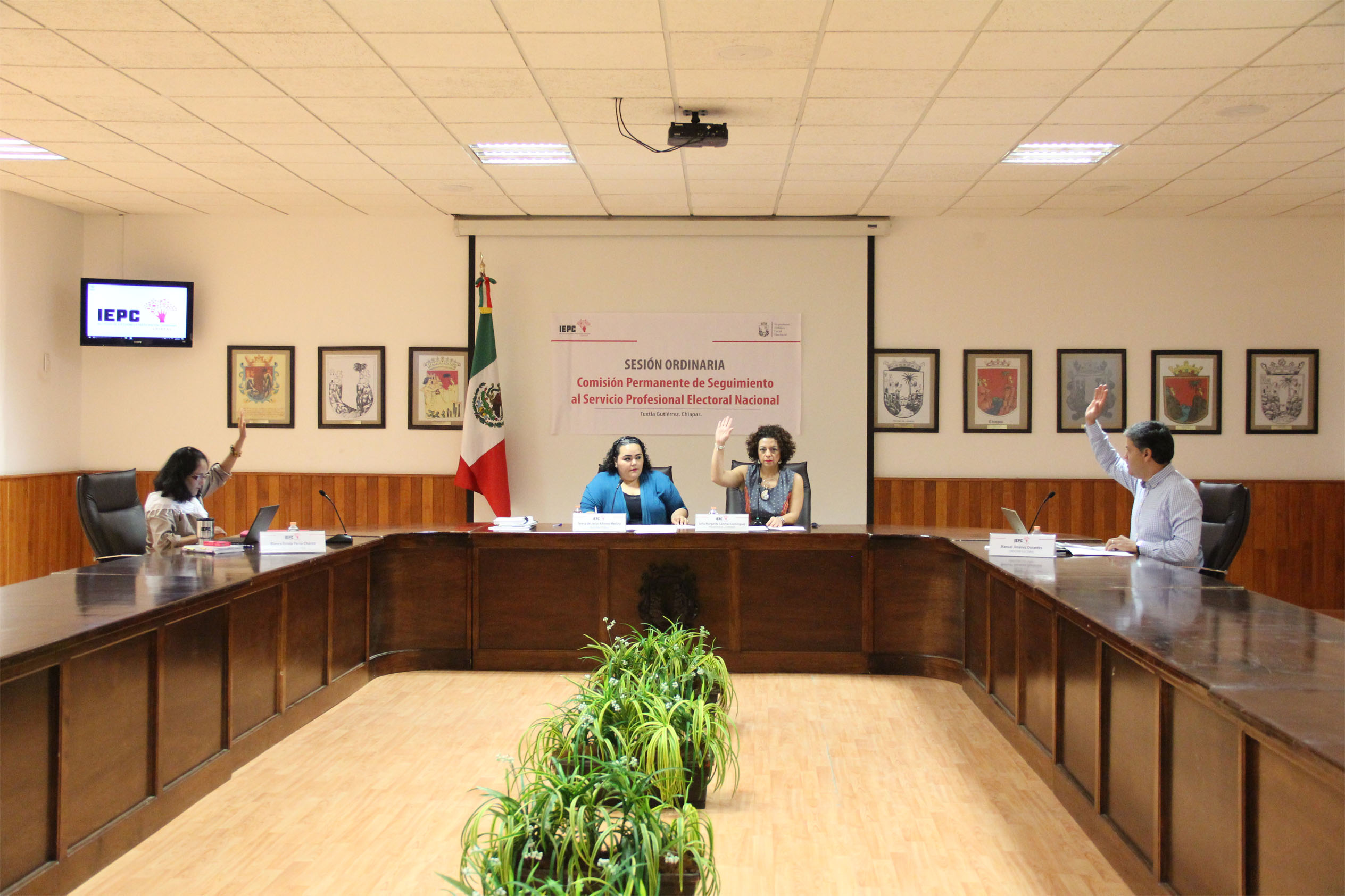 También hoy sesionó la Comisión Permanente de Seguimiento al Servicio Profesional Electoral Nacional, en donde se conocieron los avances que se tienen del proceso de selección de candidatos a ocupar las vacantes que está ofertando el IEPC y de los exámenes que para tal fin se van a realizar en los próximos días.