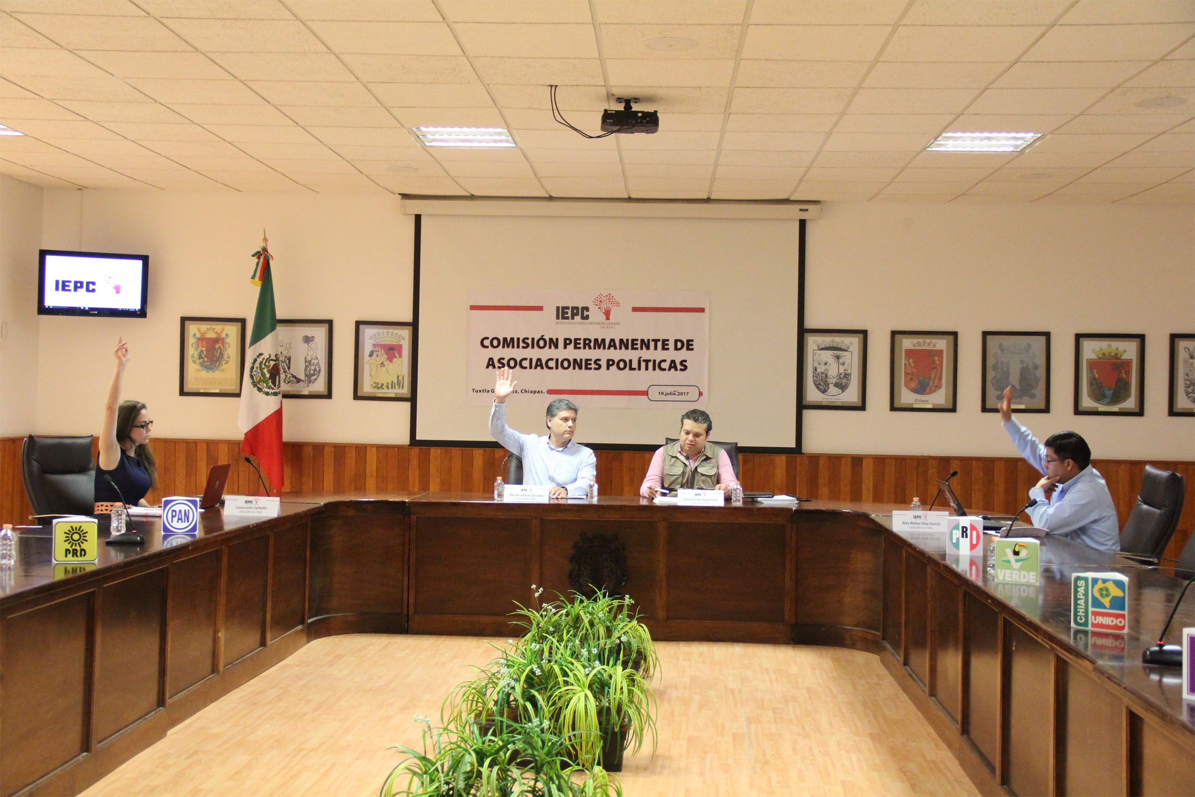 A su vez, en la sesión de la Comisión permanente de Asociaciones Políticas se dio cuenta sobre el informe que presentó el interventor designado, sobre las actividades efectuadas con motivo del procedimiento de reintegro de bienes muebles e inmuebles por pérdida de acreditación de los Partidos Políticos Nacionales Movimiento Ciudadano, Nueva Alianza, Encuentro Social y del Trabajo, también en dicha sesión se sometió a consideración de la comisión el proyecto de Reglamento de Agrupaciones Políticas Locales.