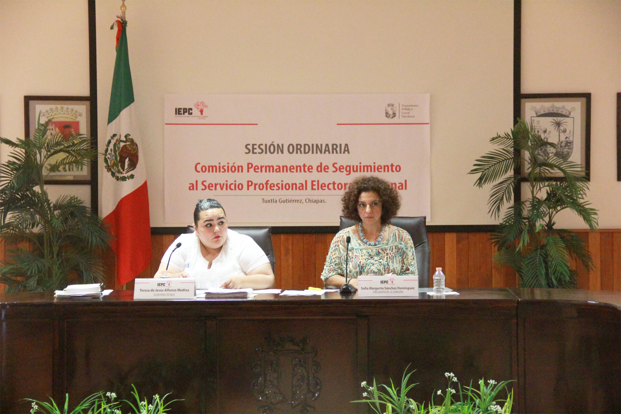 Tuxtla Gutiérrez, Chiapas a 21 de agosto de 2018.- El día de hoy en sesión ordinaria de la Comisión Permanente de Seguimiento del Servicio Profesional Electoral Nacional se aprobó someter a consideración de la Junta General Ejecutiva del Instituto de Elecciones y Participación Ciudadana el proyecto de programa institucional “Implementación de los mecanismos del Servicio Profesional Electoral nacional” para el ejercicio 2018, presentado por la Unidad Técnica del Servicio Profesional Electoral, expresó la consejera presidenta de esta Comisión Sofía Margarita Sánchez Domínguez.