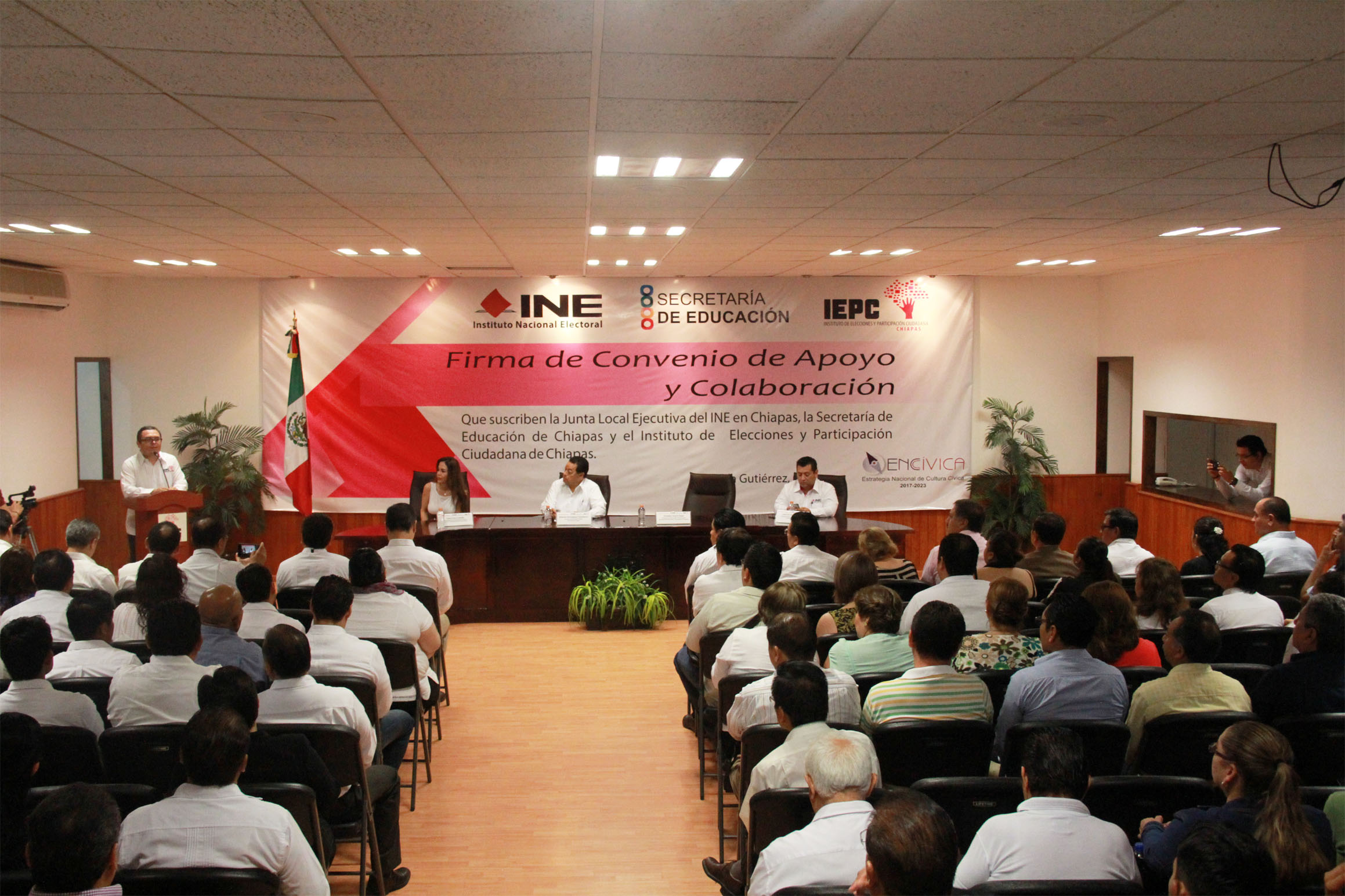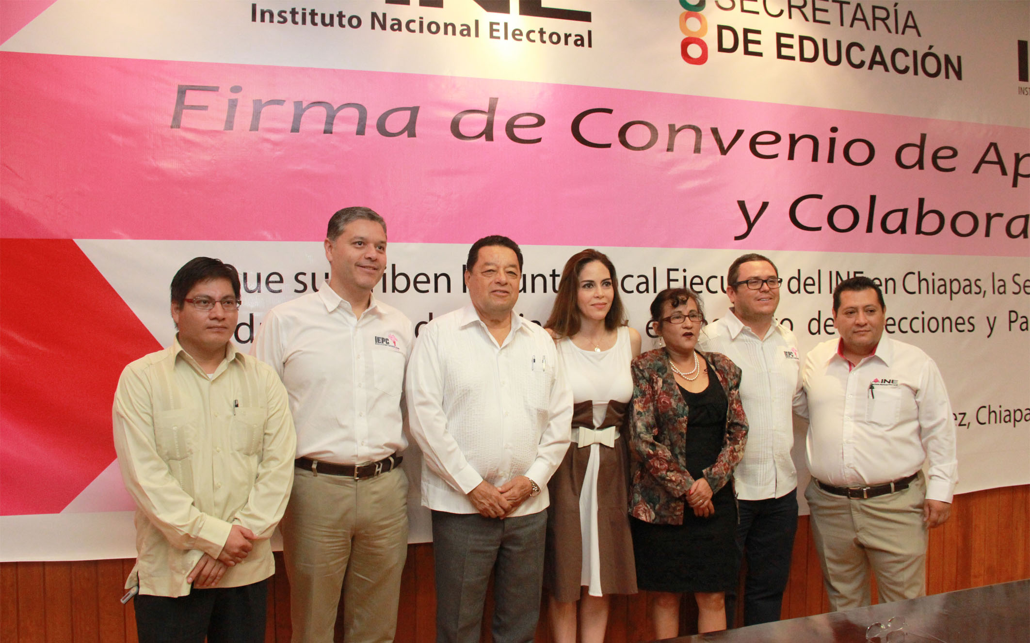 Con dicha acción, ambas instituciones y la dependencia estatal buscan establecer las bases para instrumentar conjuntamente actividades y proyectos que se vinculen directamente con los ejes y líneas de acción de la Estrategia Nacional de Cultura Cívica- ENCCÍVICA, aprobada por el Consejo General del Instituto Nacional Electoral, a fin de difundir, promover y fortalecer la cultura cívica democrática entre la población estudiantil del nivel básico, media superior y superior de la entidad chiapaneca.
