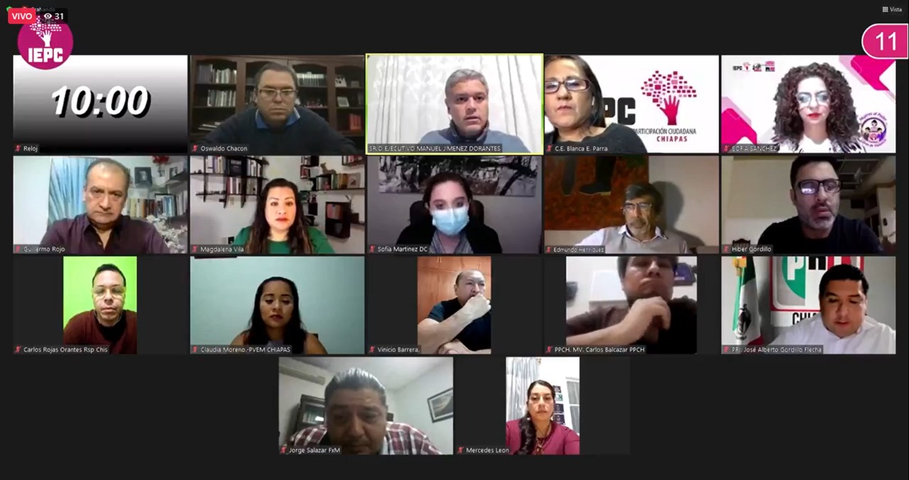 - La Consejera del INE Norma Irene De la Cruz Magaña se reunió en mesa de trabajo con las y los Consejeros del IEPC para revisar el desarrollo de los comicios extraordinarios en 6 municipios de Chiapas.