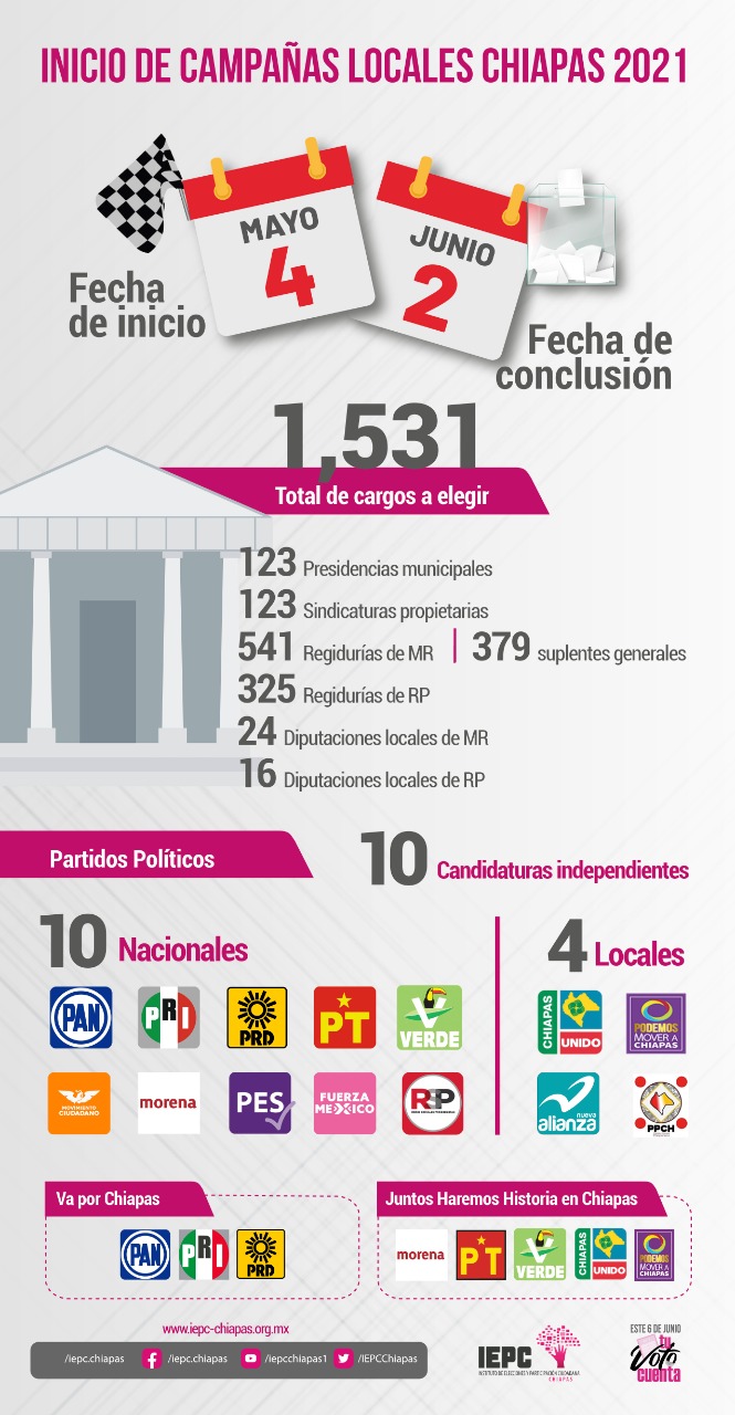 * Las campañas electorales comenzarán el primer minuto de este martes 4 de mayo y concluirán el próximo miércoles 2 de junio.