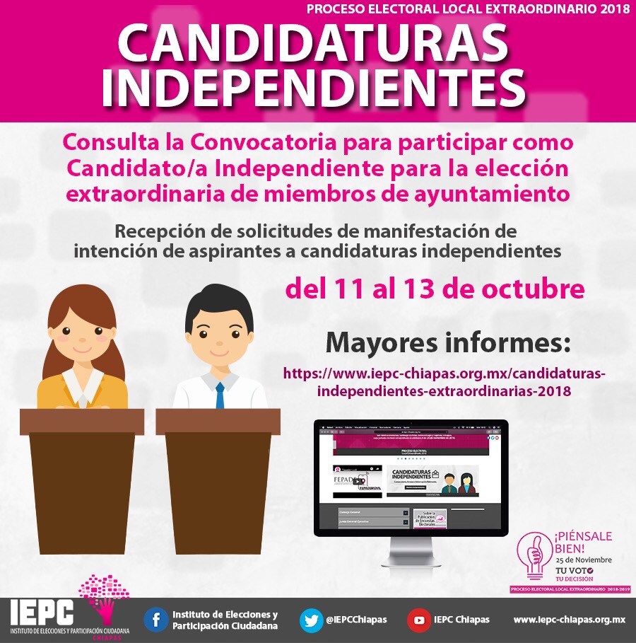 Derivado de lo anterior, mediante acuerdo IEPC/CG-A/210/2018, el Consejo General del IEPC aprobó en estricto apego al respeto de la cosmovisión, autodeterminación, y democracia interna de las comunidades y pueblos originarios de la entidad, la emisión de la convocatoria relativa para participar en el proceso de designación de integrantes del Consejo Municipal de Rincón Chamula, dirigida a la ciudadanía interesada en participar en el presente Proceso Extraordinario.