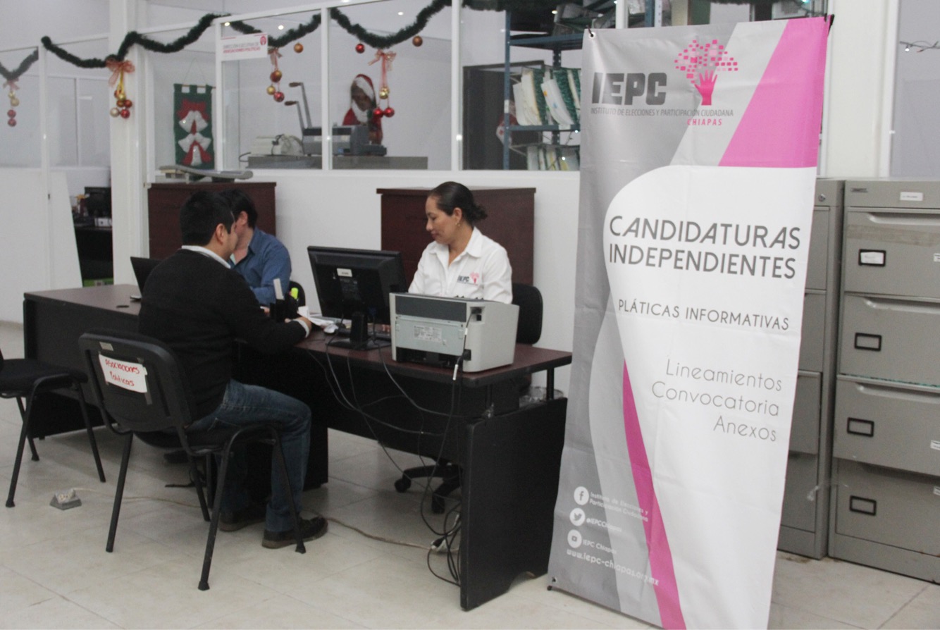 La ciudadanía interesada en contender en la modalidad de Candidatura Independiente, en el Proceso Electoral Local Ordinario 2017-2018, deberá presentar su carta de intención ante el Instituto de Elecciones y Participación Ciudadana (IEPC) de Chiapas, a partir del 14 de diciembre de 2017, teniendo como plazo el 12 de enero de 2018.
