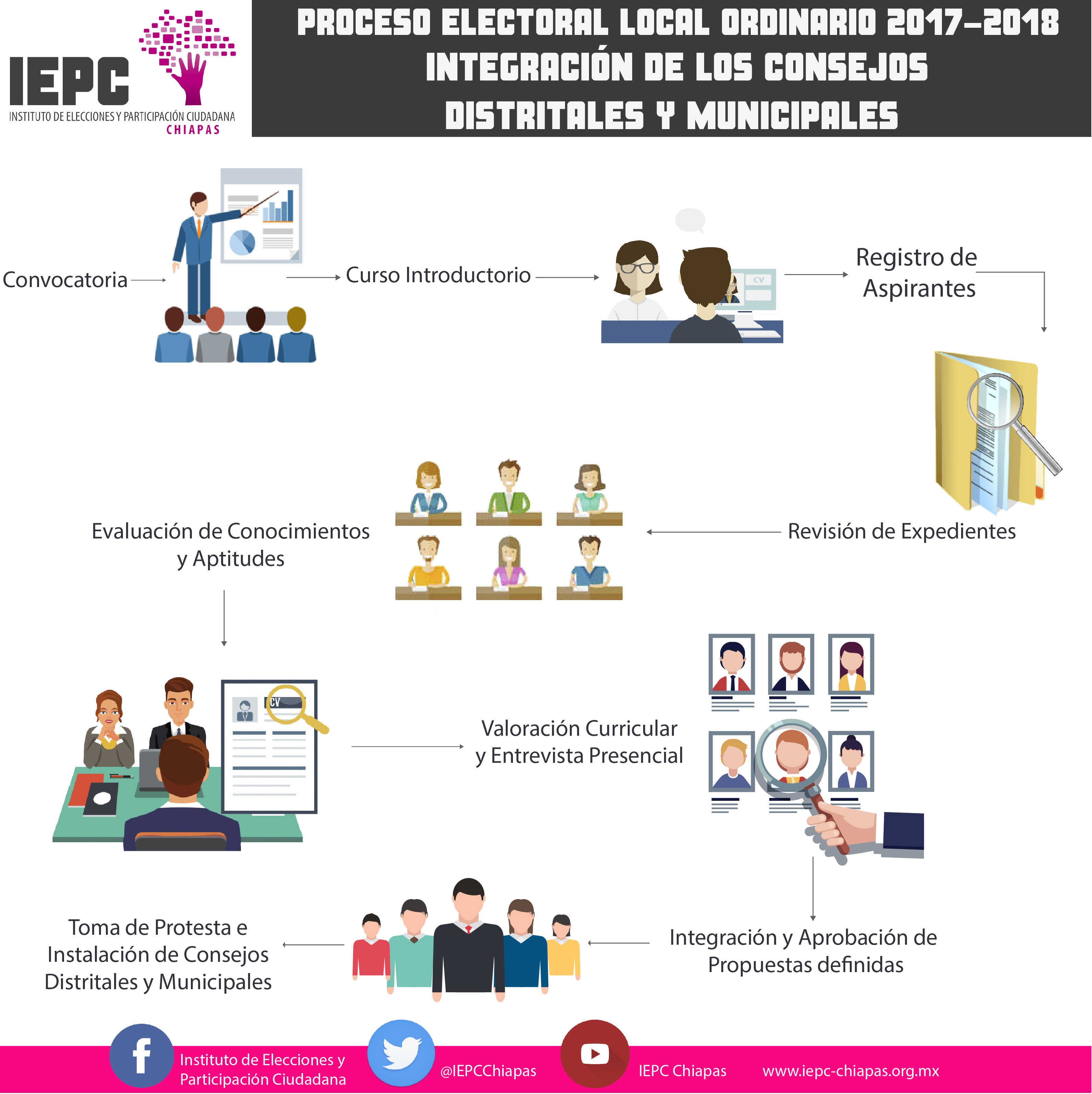 - Con el proceso se seleccionará al personal que formará los 24 consejos distritales y 123 consejos municipales durante el proceso electoral local 2017-2018.