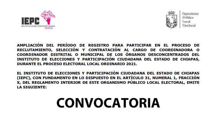 Convocatoria para el proceso de Reclutamiento, Selección y Contratación al cargo de Coordinadora o Coordinador Distrital o Municipal