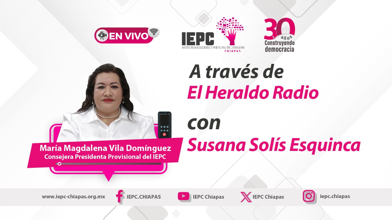 Entrevista de la Consejera Presidenta Provisional del IEPC, María Magdalena Vila Domínguez a través de El Heraldo Radio con Susana Solís Esquinca.