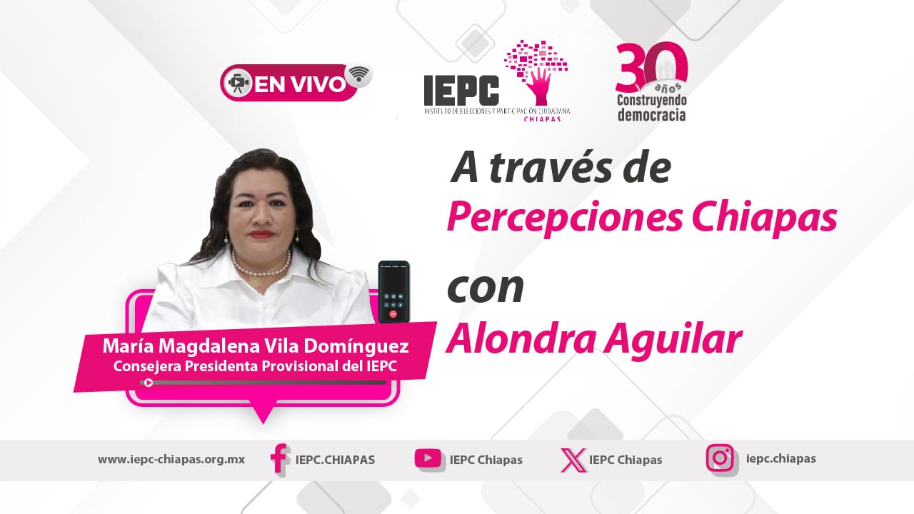 Entrevista de la Consejera Presidenta Provisional del IEPC, María Magdalena Vila Domínguez a través de Percepciones Chiapas con Alondra Aguilar.