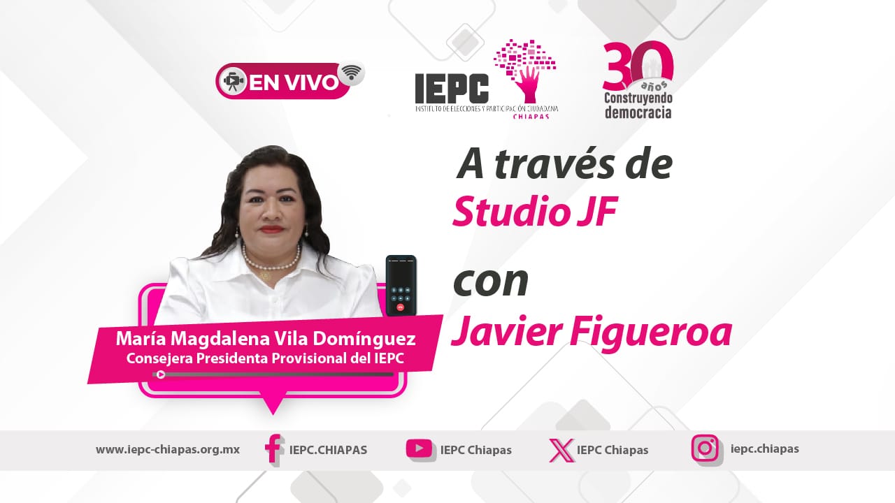 Entrevista de la Consejera Presidenta Provisional del IEPC, María Magdalena Vila Domínguez a través de Studio JF con Javier Figueroa.