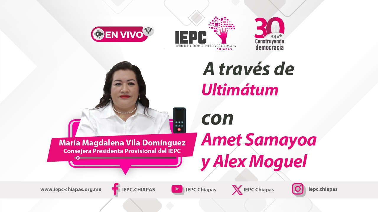 Entrevista de la Consejera Presidenta Provisional del IEPC, María Magdalena Vila Domínguez a través de Últimátum con Amet Samayoa y Alex Moguel.