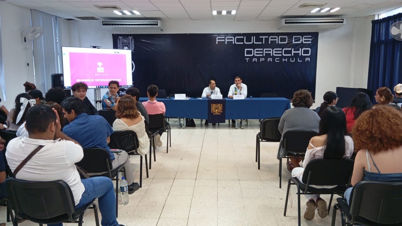 TALLER MECANISMOS DE PARTICIPACIÓN CIUDADANA A LA COMUNIDAD ESTUDIANTIL DE LA FACULTAD DE DERECHO CAMPUS III, EXTENSIÓN TAPACHULA DE LA BENEMERITA UNIVERSIDAD AUTONOMA DE CHIAPAS
