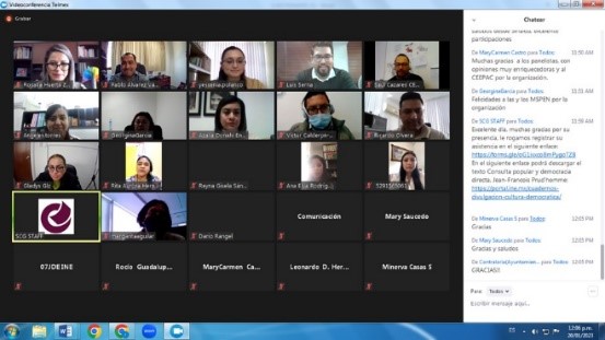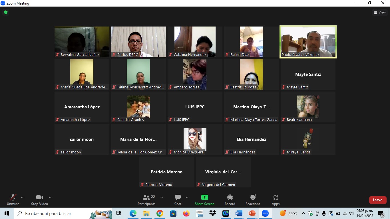 1. Capacitación virtual sobre “Mecanismos de Participación Ciudadana: Audiencia Pública”, a egresados del Diplomado “Escuela de liderazgo para mujer indígena, rurales y afromexicanas”. 19/01/2023