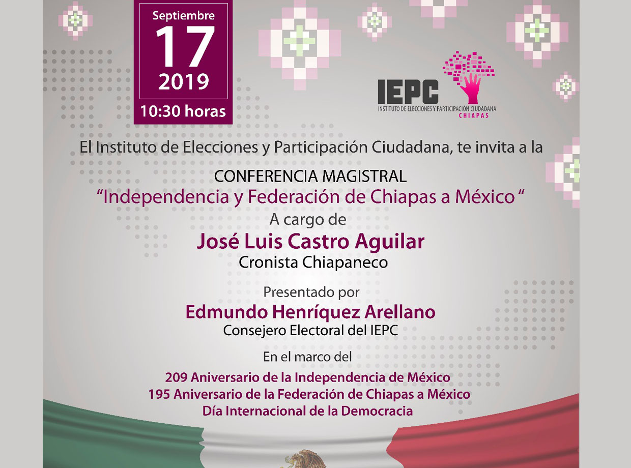 - COFERENCIA MAGISTRAL Independencia y Federación de Chiapas a México, 17Sep2019
