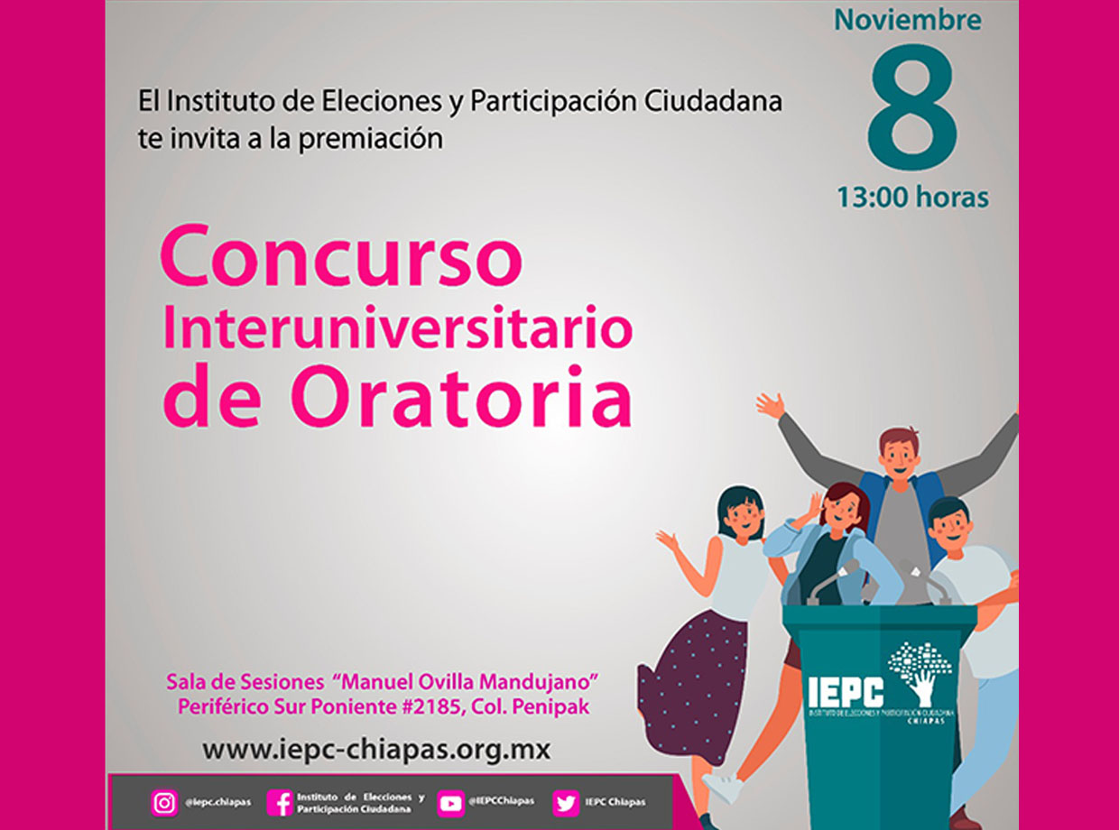 Premiación: Concurso Interuniversitario de Oratoria, 8Nov2019 Premiación: Concurso Interuniversitario de Oratoria8 de Noviembre de 2019 13:00 horas