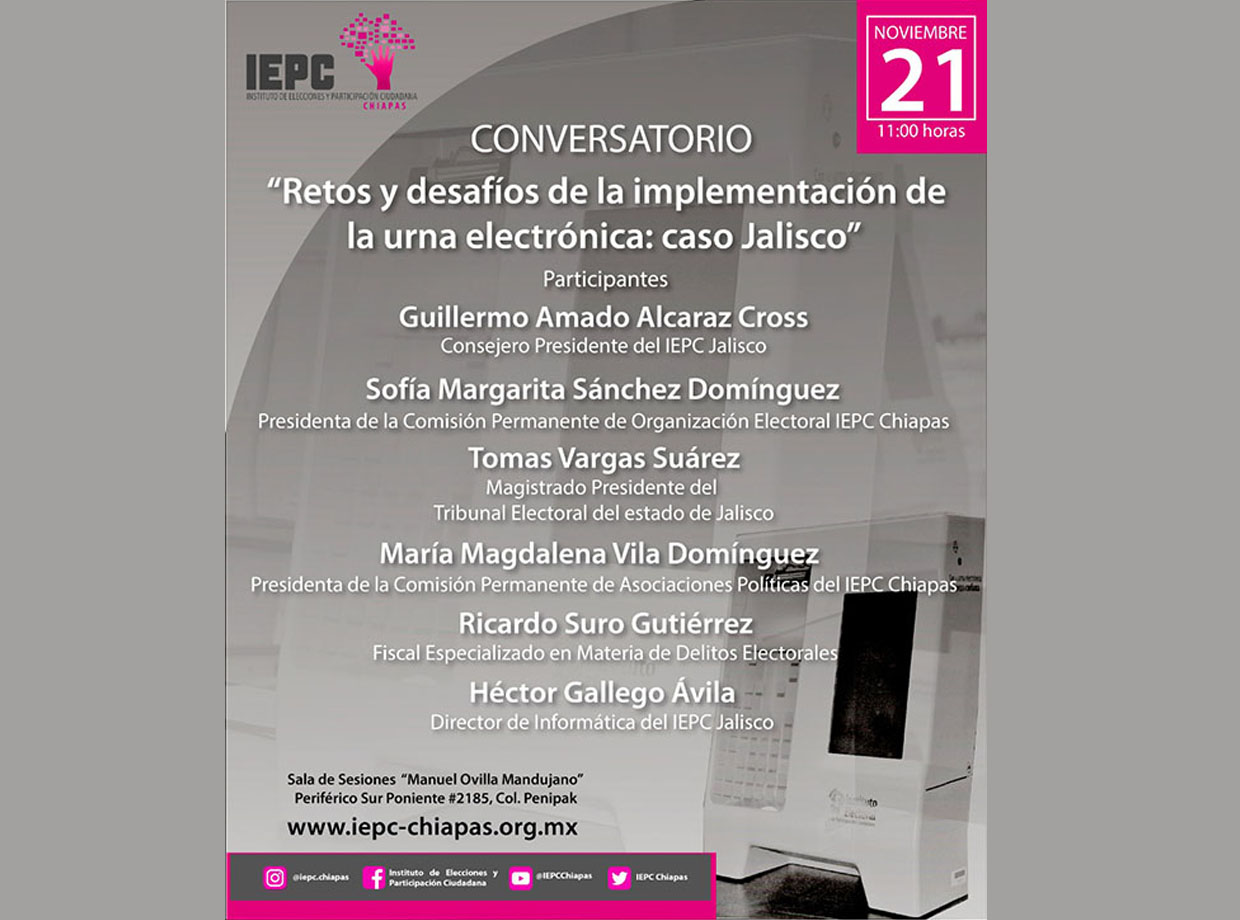 - Conversatorio: "Retos y desafíos de la implementación de la urna electrónica: caso Jalisco"