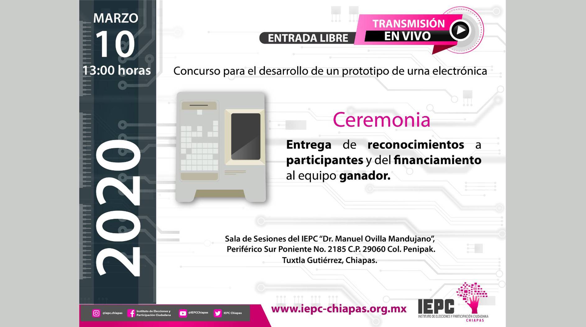 - PREMIACIÓN Concurso Creación de prototipo de URNA ELECTRÓNICA, 10Mar2020