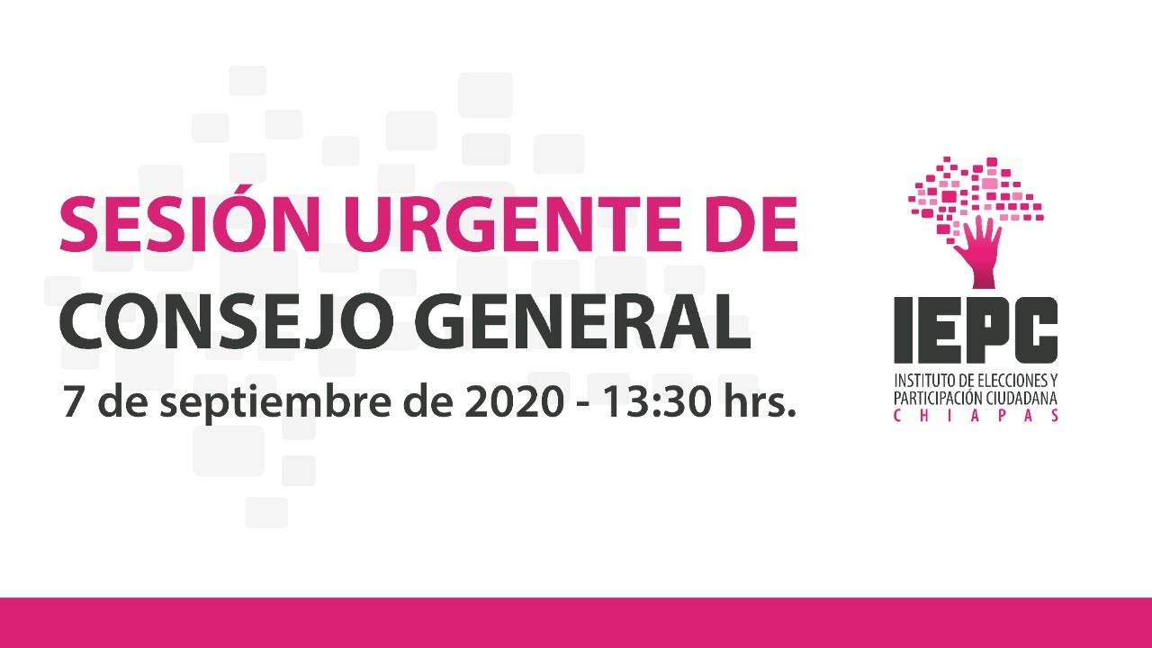 Sesión Urgente de Consejo General, 7Sep2020 Sesión Urgente de Consejo General7 de Septiembre de 2020 10:00 horas