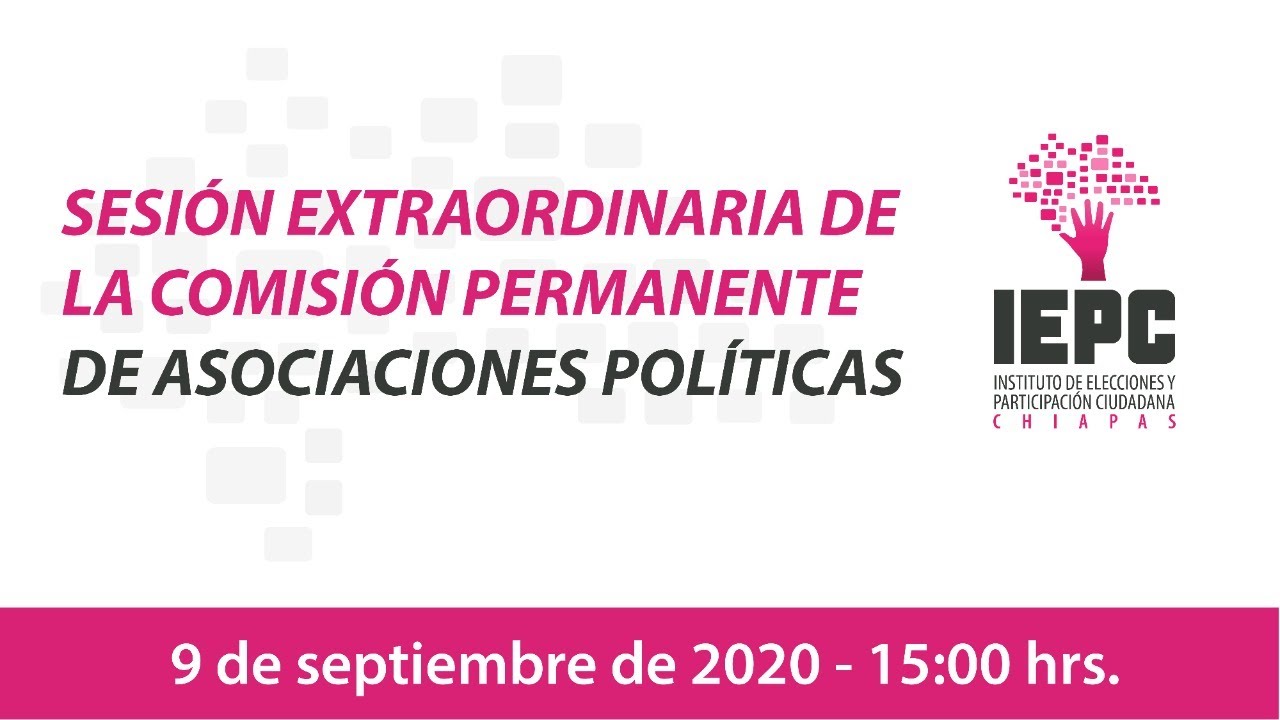 Sesión de la Comisión Permanente de Asociaciones Políticas, 9Sep2020 Sesión de la Comisión Permanente de Asociaciones Políticas9 de Septiembre de 2020 15:00 horas