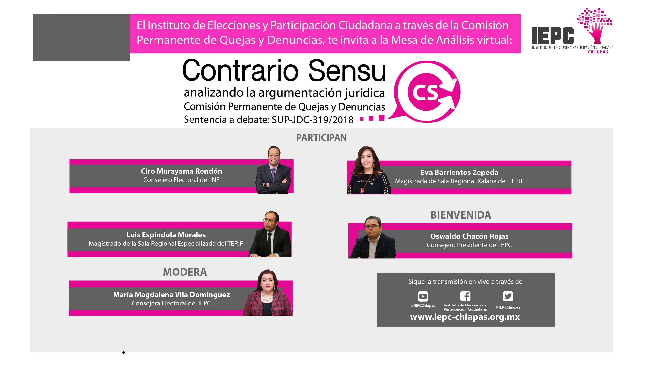Mesa de Análisis: Contrario Sensu Contrario SensuAnalizando la argumentación jurídica. sentencia SUP-JDC-319/201823 de Octubre de 2020 11:00 horas
