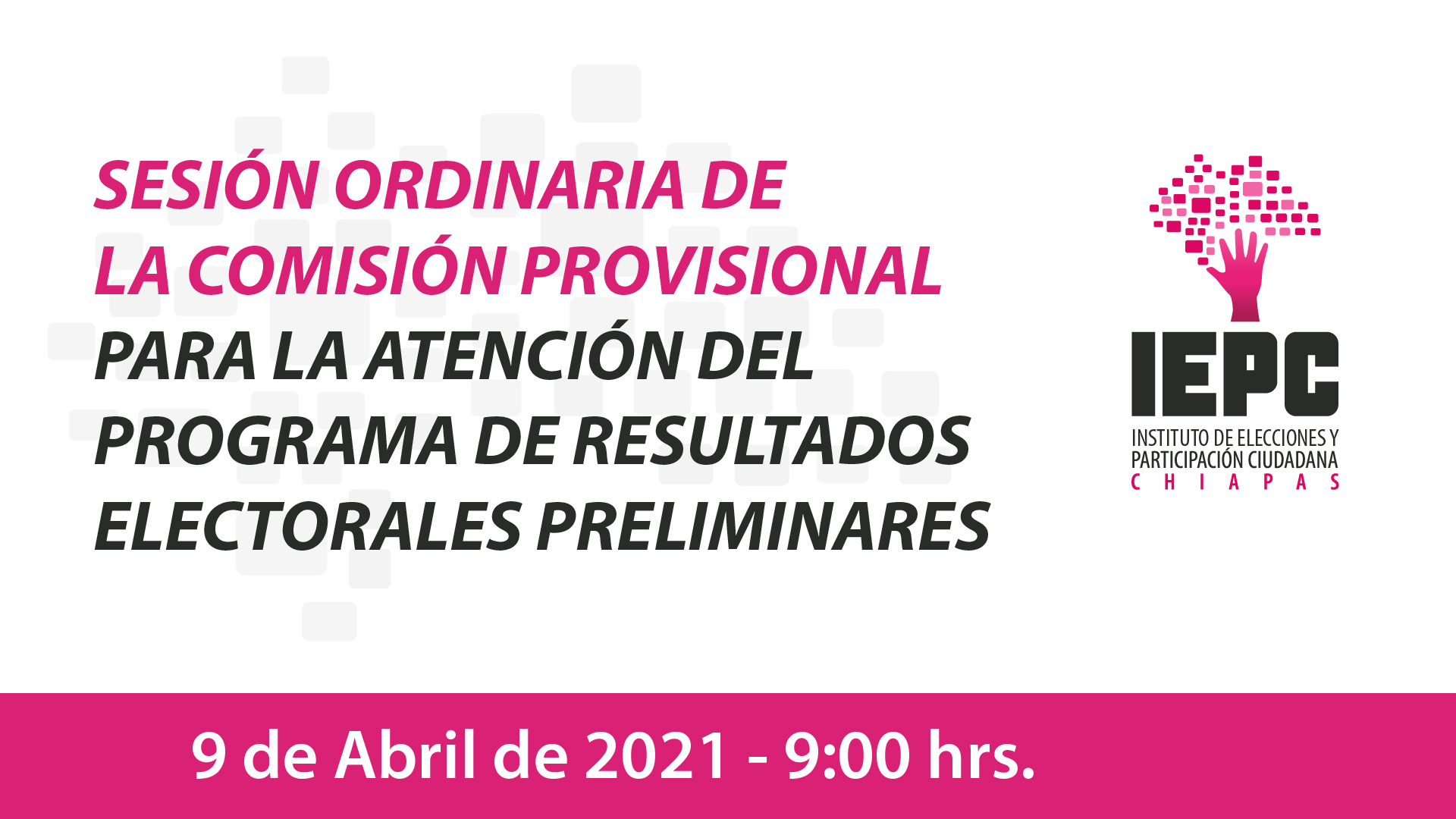 Sesión de la Comisión Provisional para la Atención del PREP, 9Abr2021 Sesión de la Comisión Provisional para la Atención del PREP9 de Abril de 2021 9:00 horas
