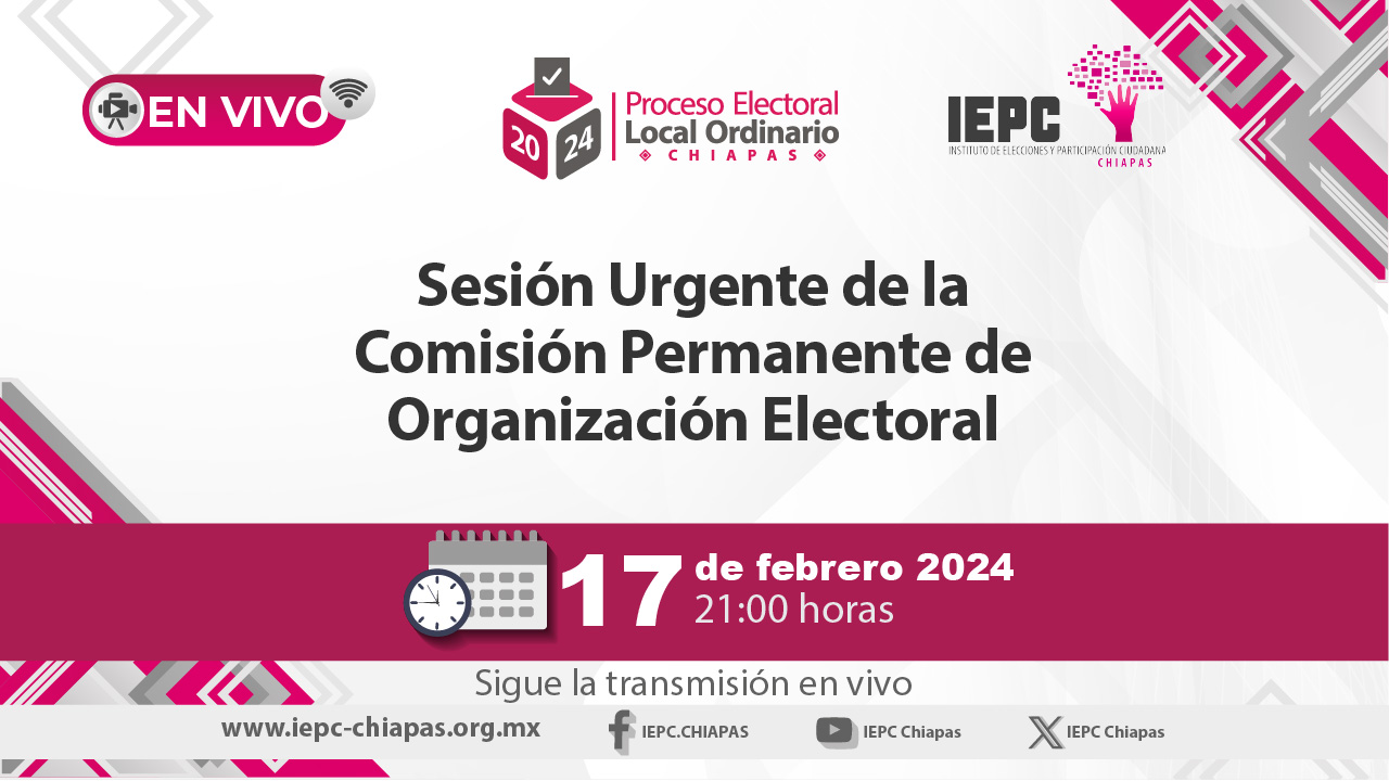 Sesión de la Comisión Permanente de Organización Electoral, 17Feb2024 Sesión de la Comisión Permanente de Organización Electoral 17 de Febrero de 2024 21:00 horas