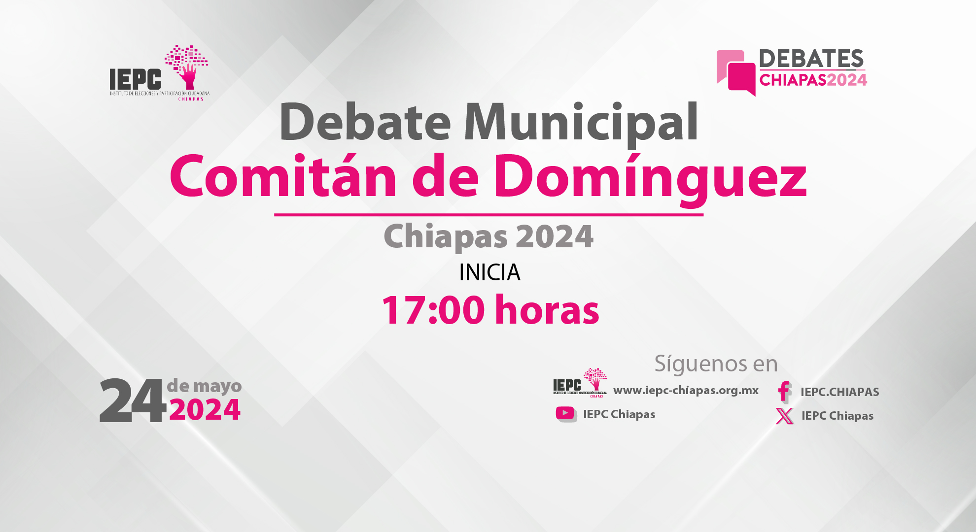Debate Municipal Comitán de Domínguez, Chiapas 2024 Debate Municipal Comitán de Domínguez, Chiapas 202424 MAYO 2024, 17:00