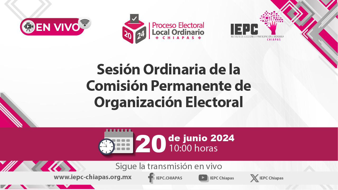 Sesión de la Comisión Permanente de Organización Electoral, 20Jun2024 Sesión de la Comisión Permanente de Organización Electoral 20 de Junio de 2024 10:00 horas