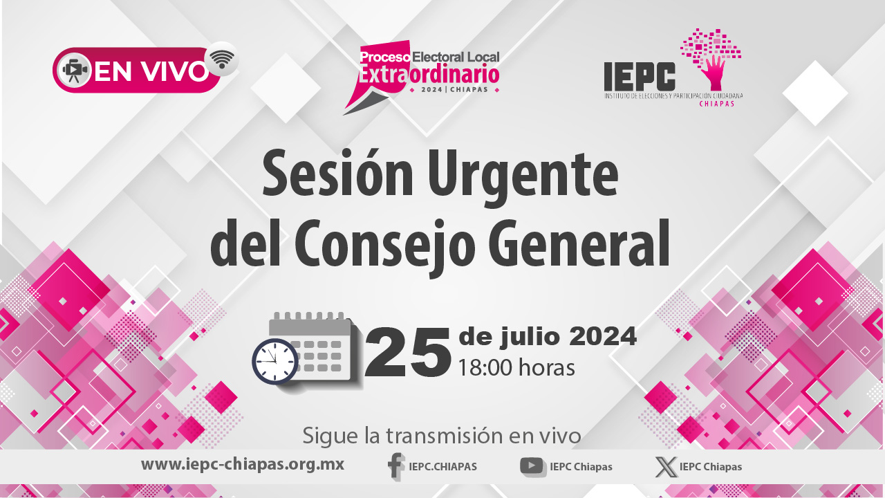 Sesión Urgente de Consejo General, 25Jul2024 Sesión Urgente de Consejo General25 de Julio de 2024 20:00 horas
