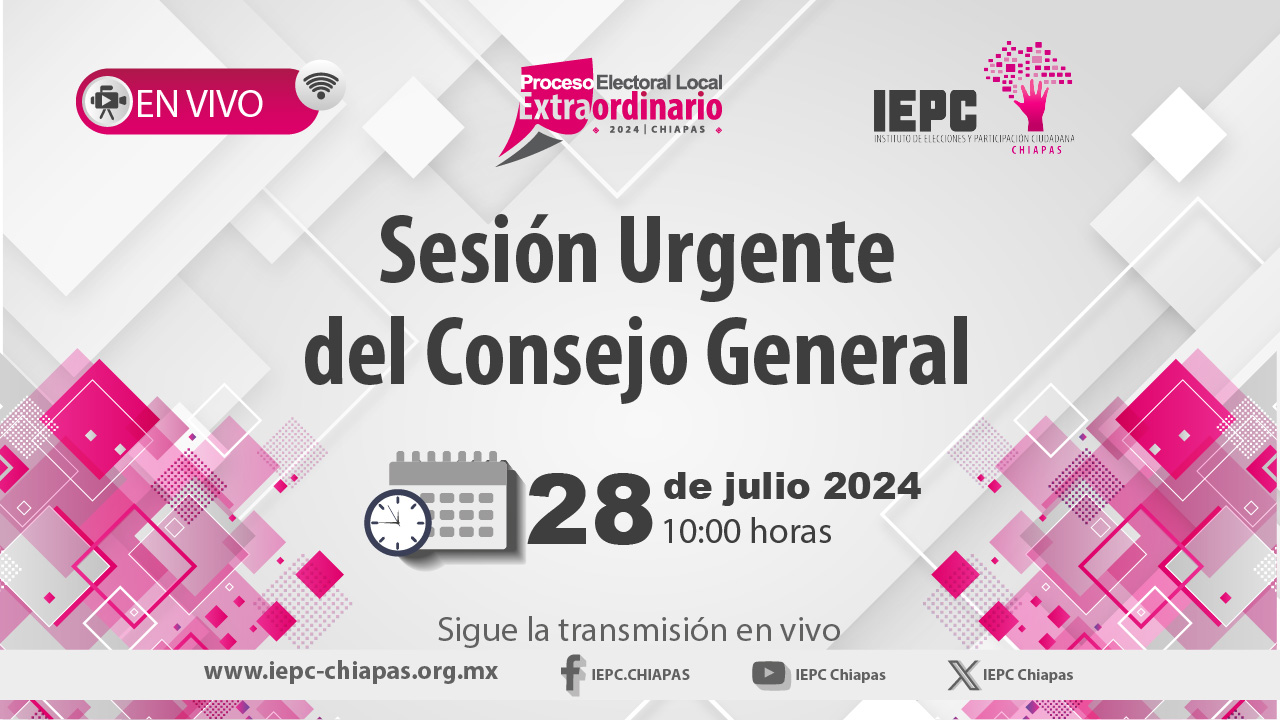 Sesión Urgente de Consejo General, 28Jul2024 Sesión Urgente de Consejo General28 de Julio de 2024 10:00 horas