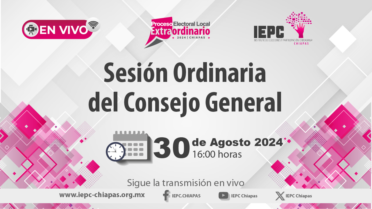 Sesión Ordinaria de Consejo General, 30Ago2024 Sesión Ordinaria de Consejo General30 de Agosto de 2024 16:00 horas