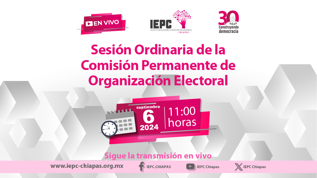 Sesión de la Comisión Permanente de Organización Electoral, 6Sep2024 Sesión de la Comisión Permanente de Organización Electoral 6 de Septiembre de 2024 11:00 horas