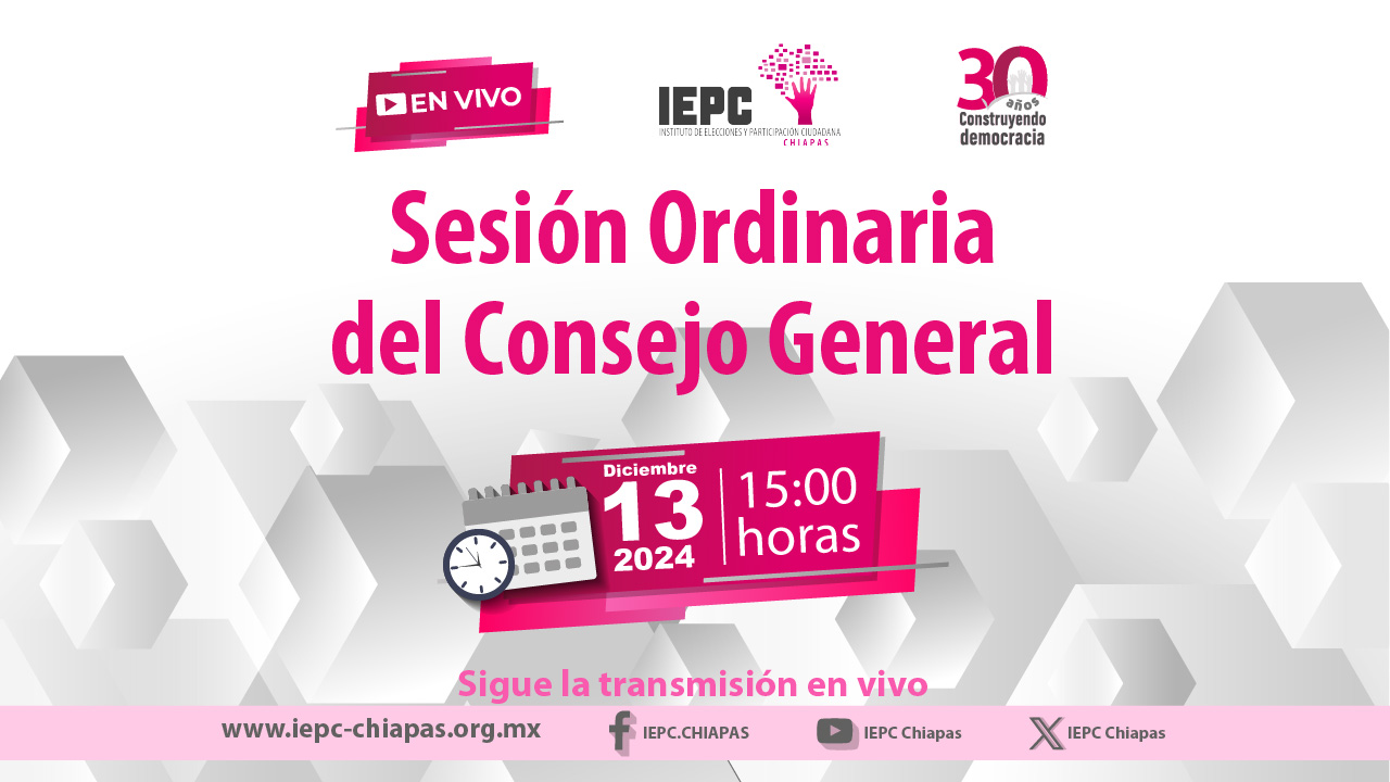 Sesión Ordinaria de Consejo General, 13Dic2024 Sesión Ordinaria de Consejo General13 de Diciembre de 2024 15:00 horas
