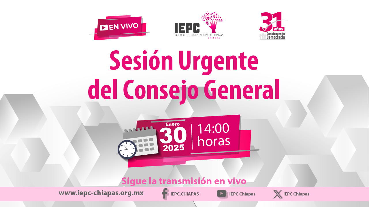 Sesión Urgente de Consejo General, 30Ene2025 Sesión Urgente de Consejo General30 de Enero de 2025 14:00 horas