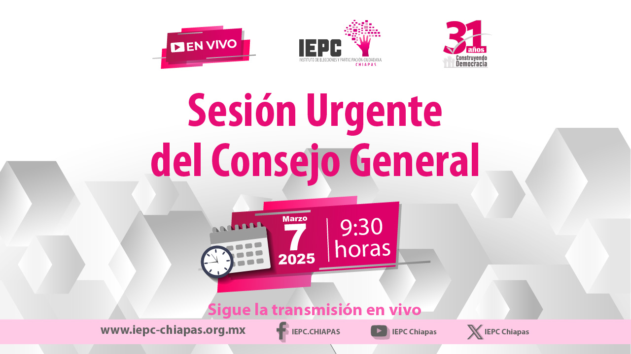 Sesión Urgente de Consejo General, 07Mar2025 Sesión Urgente de Consejo General07 de Marzo de 2025 09:30 horas