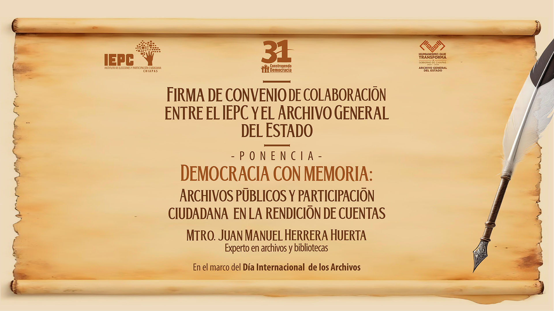 Firma de Convenio con el Archivo General del Estado y desarrollo de la ponencia en Conmemoración del día Internacional de los Archivos 6 Junio de 2025 12:00 horas