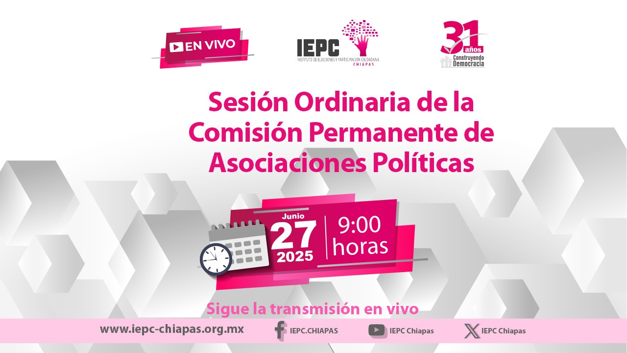 Sesión de la Comisión Permanente de Asociaciones Políticas, 27Jun2025 Sesión de la Comisión Permanente de Asociaciones Políticas27 de Junio de 2025 09:00 horas