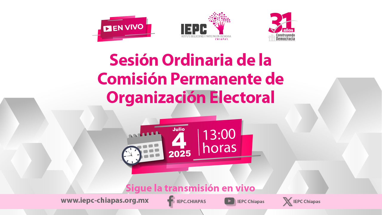 Sesión de la Comisión Permanente Organización Electoral, 04Jul2025 Sesión de la Comisión Permanente Organización Electoral04 de Julio de 2025 13:00 horas